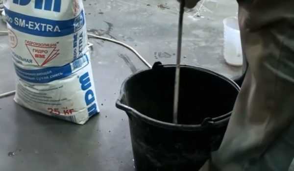 - готовый раствор быстро теряет свои свойства, и его нужно использовать в течение 30 мин. с момента приготовления. Так что готовить гидроизоляцию придется небольшими порциями;
