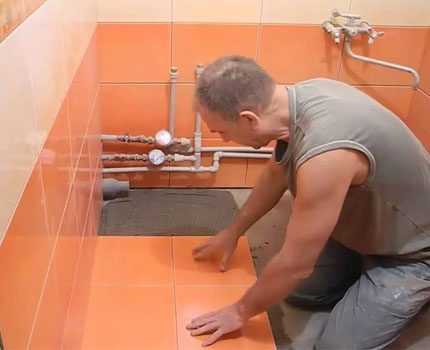 Если планируется частичная укладка плитки, области в районе раковины, унитаза и ванной обмазывают тремя слоями мастики. Каждый из них наносят после высыхания предыдущего. Плитку укладывают на полностью высохшую изоляцию.