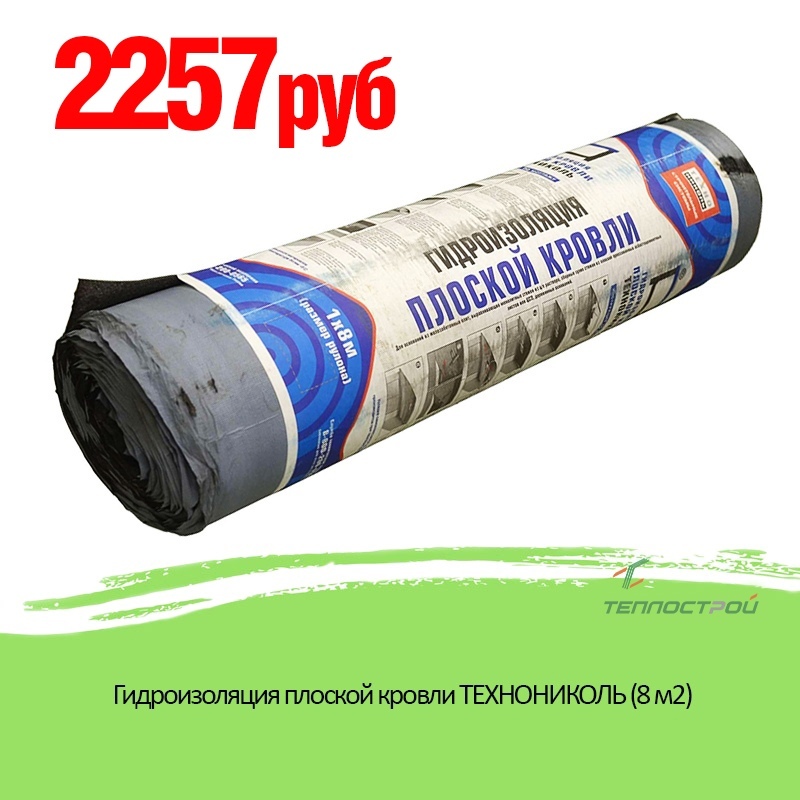 Гидроизоляция плоской кровли: Гидроизоляция плоской кровли ТЕХНОНИКОЛЬ,8×1 м (Рулонные кровельные материалы)