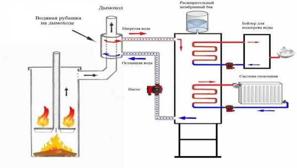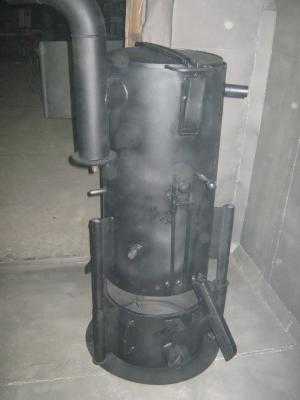 Пиролизная печь с водяным контуром в силах подогреть небольшой объём жидкости за короткий промежуток времени.