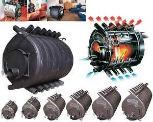 - Устройства с теплообменником из чугуна. Срок эксплуатации — минимум два десятка лет, однако агрегат чувствителен в резким температурным перепадам в топочной камере. В таких агрессивных условиях чугунная пиролизная печь постепенно приходит в негодность.