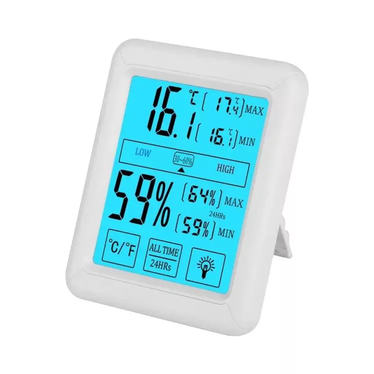 - Большой цифровой дисплей для отображения влажности и температуры