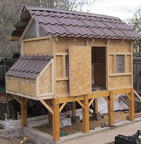 Строительство курятника практически закончено. Осталось утеплить пенопластом, обшить OSB, вставить окошки, прибить наличники и покрасить. Мы будем это делать позже.