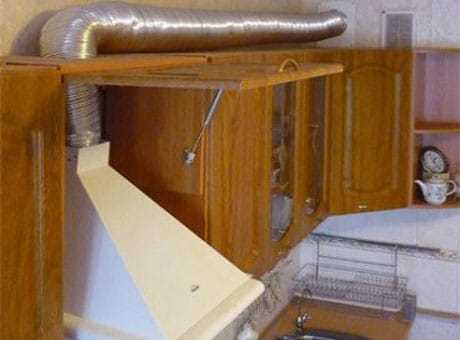 Гофра для вытяжки считается идеальной, если полностью скрывается в навесном шкафу. Работы ведутся без использования специальных переходников и сложных элементов крепления, что дает возможность не тратить лишних средств на проведение работ. Эластичная ребристая конструкция легко огибает препятствия, что позволяет не применять дополнительных соединений и фитингов. Перед началом работ, гофра полностью растягивается и устанавливается в таком виде, что снижает шум при работе вентилятора. В противном случае получившиеся складки обязательно создадут вибрацию, и работа вытяжки станет сопровождаться повышенным дребезжанием.