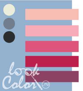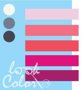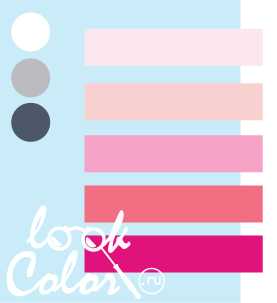 Светло-голубой сочетается с розовым: бело-лиловым, закатно-розовым, кораллово-розовым, маджентой, пурпурно-розовым. Нейтральная палитра: кремово-белый, цвет шифер, антрацитовый.