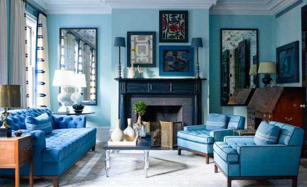 Голубой цвет в интерьере гостиной будет отличным вариантом
