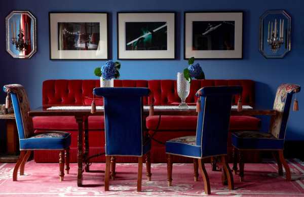 Сочетание красного и голубого в интерьере будет выглядеть изыскано и благородно