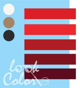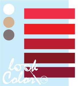 Бело-голубой сочетается с красным: светло-красным, средне-красным, красно-коралловым, богряным, рубиновым. Основа: белый, бежевый, серо-коричневый.