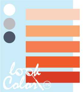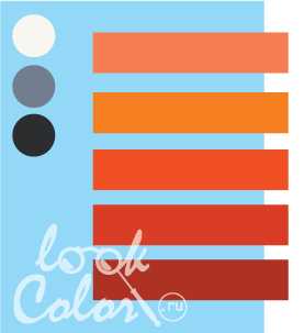 Бело-голубой сочетается с оранжевым: светло-персиковым, оранжево-персиковым, оранжево-коралловым, морковным, красно-оранжевым. Нейтральная гамма: белый, светло-серый, маренго.