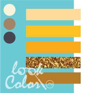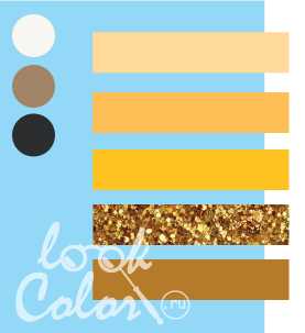 Светло-голубой сочетается с желтым: абрикосовым, шафрановым, кукурузным, ярко-золотом, темно-желтым. База: кремовый, темно-бежевый, мокрый асфальт.