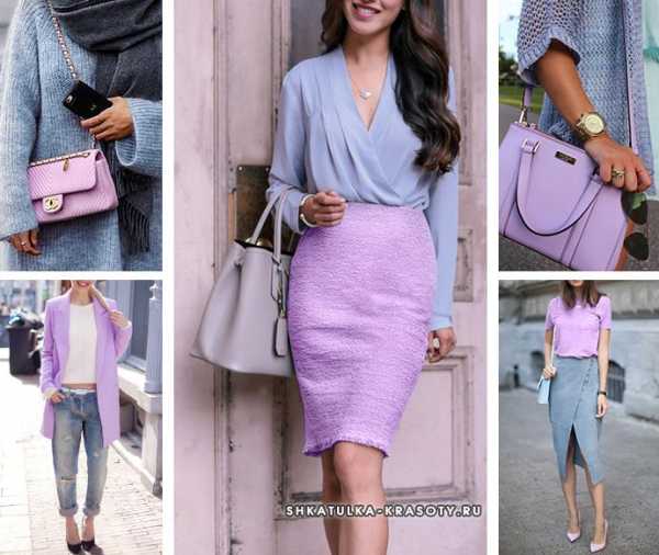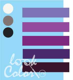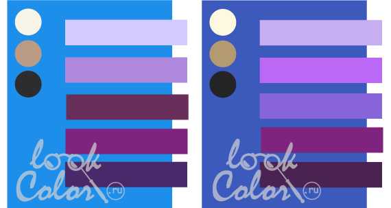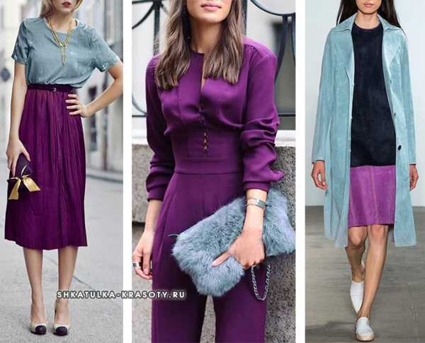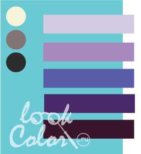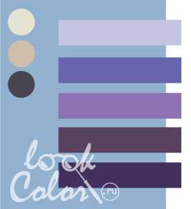 Светло-голубой сочетается с фиолетовым: лавандовым, орхидеей, пурпурным, красно-фиолетовым, баклажановым. Базовые: кремовый, серо-коричневый, мокрый асфальт.