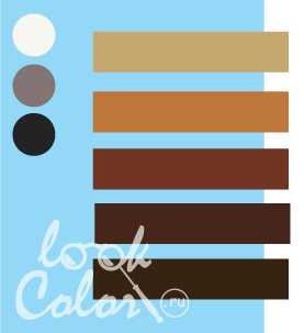 Светло-голубой сочетается с коричневым: верблюжьим, корицей, светло-каштановым, шоколадным, кофейным. Базовые: кремовый, серо-коричневый, мокрый асфальт.