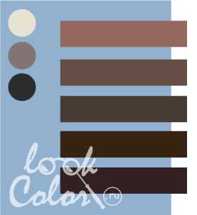 Серо-голубой сочетается с коричневым: какао, пепельно-коричневым, тауп, кофейным, горьким шоколадом.: Основные: слоновая кость, серо-коричный, мокрый асфальт.
