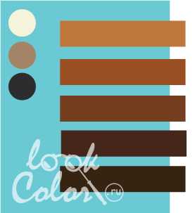 Зелено-голубой сочетается с коричневым: корицей, желто-коричневым, золотисто-каштановым, шоколадным, кофейным. База: сливочный, темно-бежевый, мокрый асфальт.