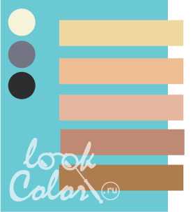 Зелено-голубой сочетается с бежевым: светло-желто-бежевый, светло-персиково-бежевый, светло-розово-бежевый, темно-розово-бежевый, темно-оранжево-бежевый. Базовые: сливочный, свинцовый, мокрый асфальт.