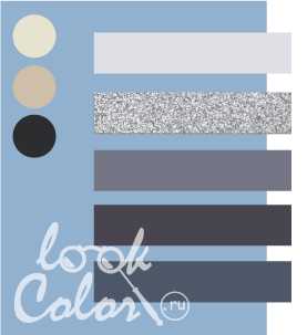 Серо-голубой сочетается с бежевым: светло-лилово-бежевый, светло-нейтрально-бежевый, темно-нейтрально-бежевый, темно-коричнево-бежевый, темно-розово-бежевый. Нейтральные: слоновая кость, серый, антрацитовый.