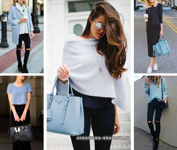 Сочетание ахроматических цветов с голубым в одежде может дать просто потрясающий эффект. При правильном подборе оттенков голубой цвет в сочетании с черным может создать очень изысканную, элегантную композицию.