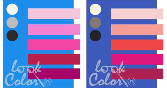 Сочетание голубого и розового в большинстве своем мягкое и нежное, однако такие цвета, как фуксия добавляют дерзости. Голубой лучше смотрится со светлыми тонами: нежно-розовыми; средними и яркими, однако лиловые тона обходит стороной. Теплые розовые тона подчеркивают прохладу голубого цвета.