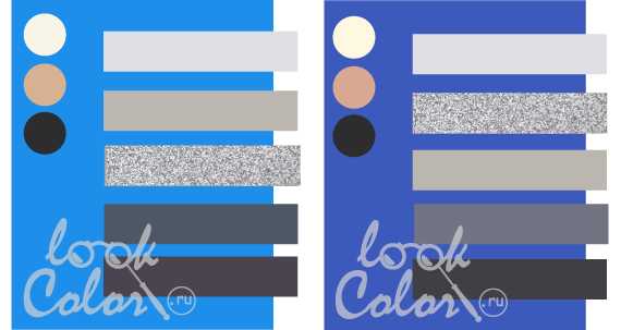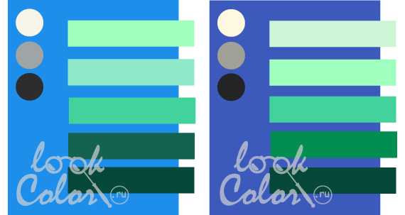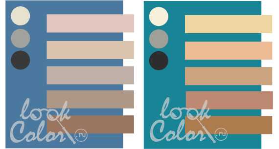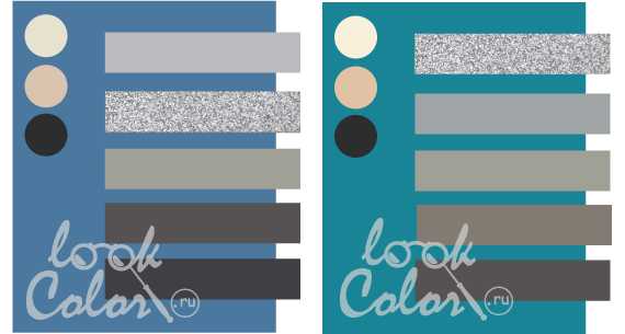 Но на практике можно увидеть, как и «весне», и «зиме» идут чистые бело-голубые и светло-голубые тона. А «лету» и «осени» сложные серо-голубые и зелено-голубые (приглушенные оттенки бирюзового). При таком распределении сочетания будут иметь ограничения.