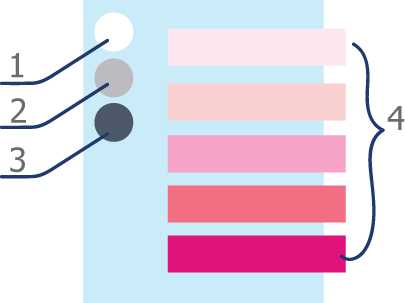 1) Оттенок белого, который соответствует контрасту цвета (в зависимости от примесей, таких как серый, в некоторых случаях красный и желтый). Он обычно остается неизменным. Белый освежает основной тон. Чем ярче оттенок, тем чище тон. Это сохраняет гармонию сочетания.