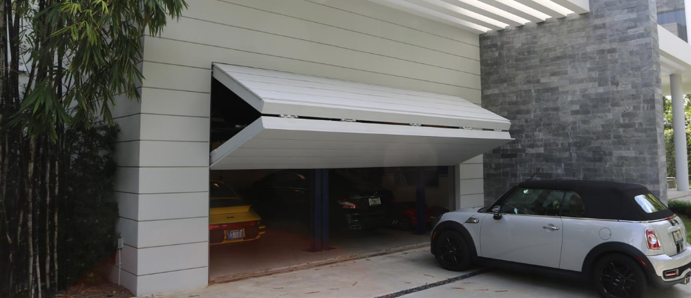 В процессе открывания полотно автоматического секционного изделия поднимается вверх по вертикали, движение происходит по направляющей, расположенной под самым потолком. В процессе открывания полотно складывается, уходит вверх, заняв горизонтальную позицию.
