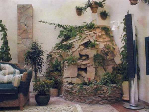 Альпийская горка с фонтаном внутри помещения