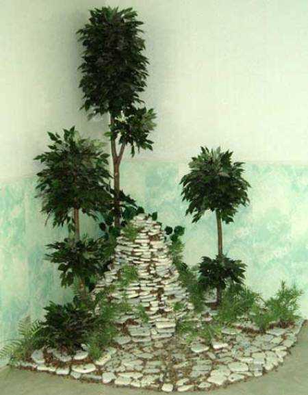 Пример альпийской горки внутри помещения с основанием из листа фанеры