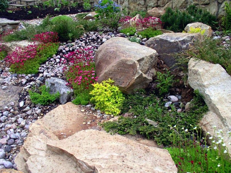 ΠΠ°ΠΌΠ½ΡΠΌΠΈ ΡΠ°Π·Π»ΠΈΡΠ½ΡΡ ΡΠ°Π·ΠΌΠ΅ΡΠΎΠ² ΠΈ ΠΎΡΡΠ΅Π½ΠΊΠΎΠ² ΠΌΠΎΠΆΠ½ΠΎ ΡΡΠΏΠ΅ΡΠ½ΠΎ ΡΠΊΡΠ°ΡΠΈΡΡ Π»ΡΠ±ΠΎΠΉ Π΄Π°ΡΠ½ΡΠΉ ΡΡΠ°ΡΡΠΎΠΊ. ΠΡΠΎΠ±Π΅Π½Π½ΠΎ Ρ ΠΎΡΠΎΡΠΎ ΠΎΠ½ΠΈ Π±ΡΠ΄ΡΡ ΡΠΌΠΎΡΡΠ΅ΡΡΡΡ Π² ΡΠ²Π΅ΡΠ½ΠΈΠΊΠ΅, Π²ΠΎΠ·Π»Π΅ Π²ΠΎΠ΄ΠΎΠ΅ΠΌΠΎΠ² ΠΈ ΡΠΊΠ°ΠΌΠ΅Π΅ΠΊ. Π Π²ΠΎΡ Π² ΡΠ°Π΄Ρ ΠΎΠΊΠΎΠ»ΠΎ Π΄Π΅ΡΠ΅Π²ΡΠ΅Π² ΠΊΠ°ΠΌΠ½ΠΈ Π»ΡΡΡΠ΅ Π½Π΅ ΡΠ°Π·ΠΌΠ΅ΡΠ°ΡΡ, ΡΡΠΎΠ±Ρ Π² Π±ΡΠ΄ΡΡΠ΅ΠΌ Π½Π΅ Π±ΡΠ»ΠΎ ΠΏΡΠΎΠ±Π»Π΅ΠΌ Ρ ΡΠ±ΠΎΡΠΊΠΎΠΉ ΡΠ΅ΡΡΠΈΡΠΎΡΠΈΠΈ.