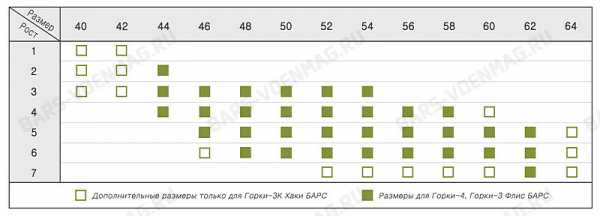 Для того чтобы вы выбирали правильно костюмы Горка, приведем таблицу российских размеров компании Барс: