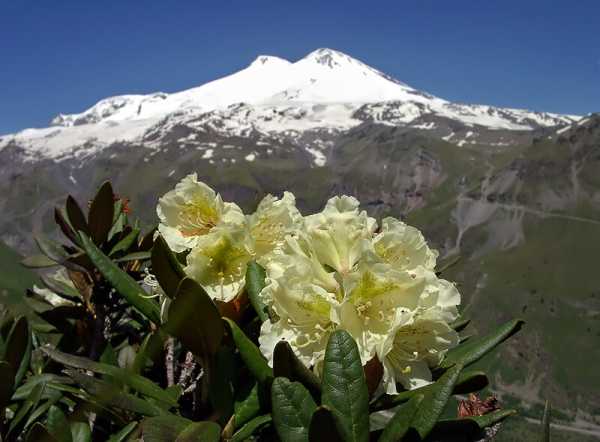 Эльбрус и рододендроны.