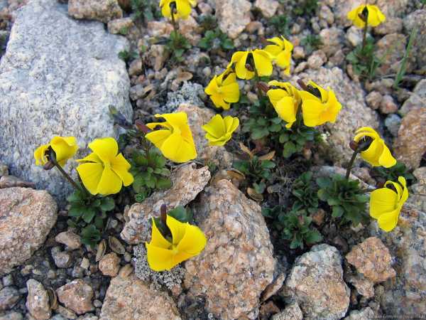 Желтые фиалки. Горы Кавказа, высота около 3300 м.