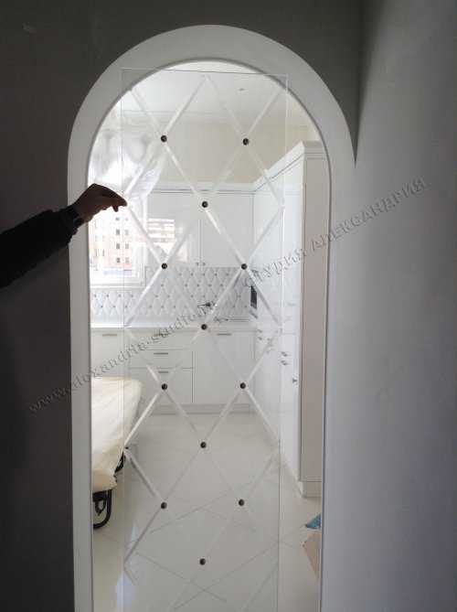 Стекло (зеркало) на глазах превращается в изделие, играющее всеми гранями, потому интерьер буквально преображается.