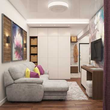 Самое важное в планировке малогабаритной гостиной – грамотно подобрать цветовую гамму для стен и потолка и выбрать правильное яркое освещение. Безусловно, и мебель должна распределяться как можно рациональней. Для этого легче всего «набросать» план желаемого интерьера, после чего вам будет намного легче ориентироваться, куда и что лучше поставить, где, по возможности, сэкономить место и так далее.