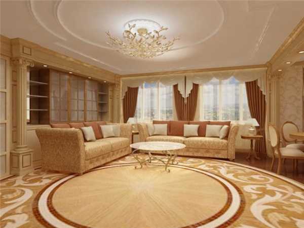 Интерьер гостиной выполнен в классическом стиле и просто наполнен роскошью, а изысканности добавит пол, являющийся настоящим украшением комнаты.