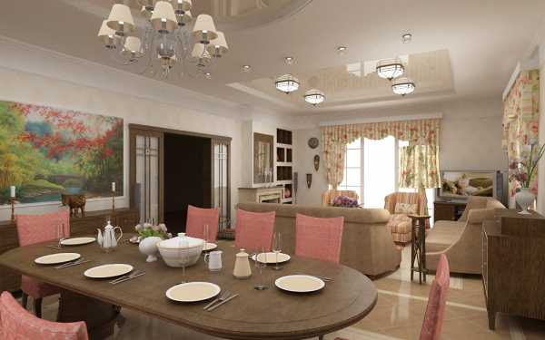 Есть несколько универсальных вариантов, которые можно использовать целиком или они могут служить конструктивной или декоративной идеей в разработке интерьера. Одной из популярных тенденций, на сегодняшний день, является расширение гостиной за счет объединения ее со столовой и кухней. За счет этого достигается желаемый эффект открытого и светлого образа. Эти зоны можно выделить с помощью локального освещения, потолочного или напольного оформления.