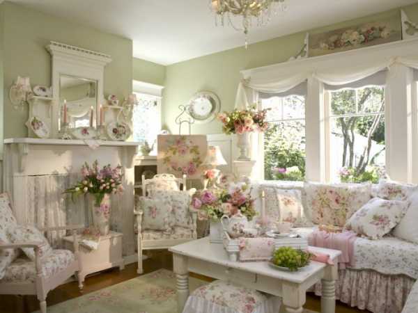 Интерьер гостиной в рассматриваемом стиле наполнен приятной и романтичной атмосферой.