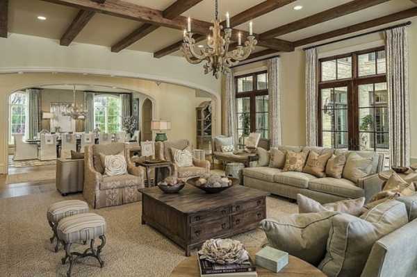 Деревенский Прованс в последнее время приобрел новых поклонников, поскольку уместен не только в загородных домах, но и современных городских новостройках. Помимо состаренной мебели, оригинальных аксессуаров, в Провансе уместны живые цветы. Профессионалы советуют выбирать и с собой тщательностью, чтобы они гармонично вписывались в общий интерьер гостиной. По всему залу можно расставить подсвечники, вазы, корзинки, изготовленные из фарфора, стекла, состаренной древесины. Мебель, изготовленная из натурального массива древесины, легкие шторы, живые растения, качественное освещение – составные компоненты уютной гостиной, в которой создается французский интерьер.