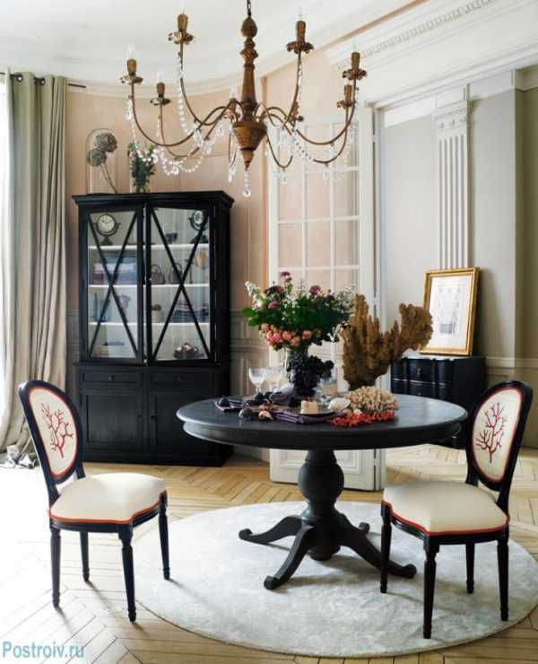 Интерьерные профессионалы не рекомендуют использовать черный тон в качестве доминирующего цвета. Он подходит только для формирования цветового акцента. Например, можно использовать в деревенском стиле черные деревянные либо металлические стулья, причудливую люстру.