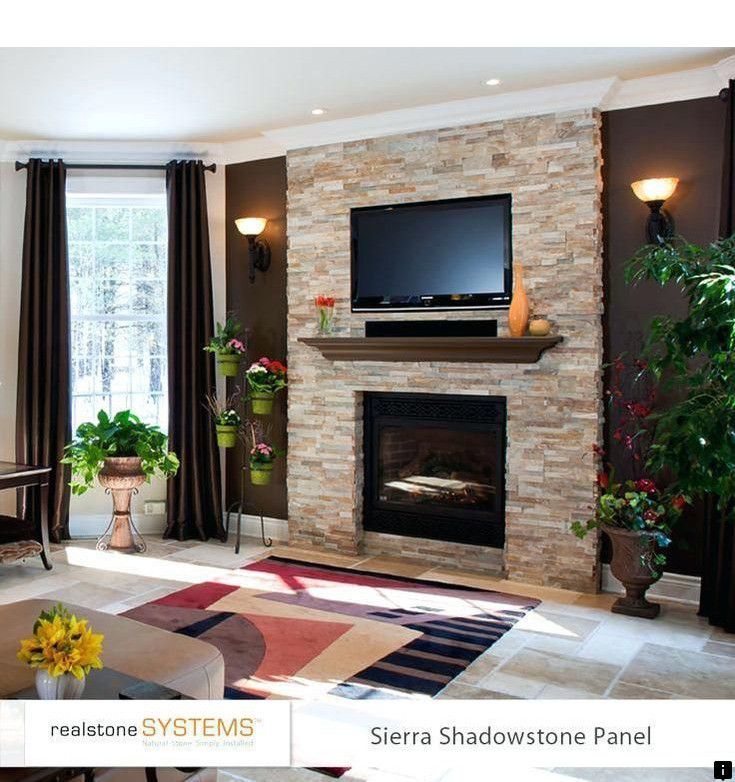 Стена из декоративного камня с камином отлично дополнять интерьер гостиной