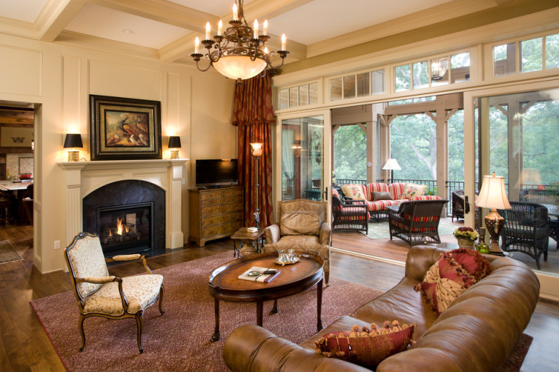 Lake Front Country Estate Living Room, designed by Tom Markalunas, built by Resort Custom Homes.