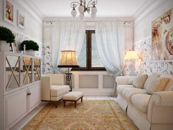 Дизайн гостиной в стиле прованс предполагает что света должно быть достаточно, но не слишком много. Комната всегда должна быть светлой и уютной. Как правило, окна нужно закрывать только ночью. Для такого стиля вообще не уместны плотные шторы.