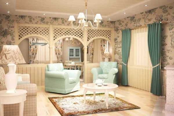 Гостиная комната в стиле прованс создаст приятную и уютную атмосферу