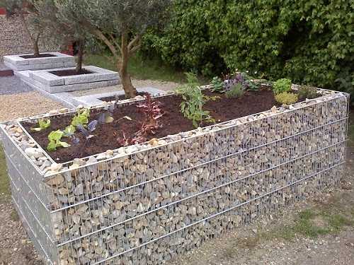Рис.9. Грядку можно изготовить, собрав конструкцию из двух стальных сеток и засыпав промежуток крупным камнем. Получается оригинальная конструкция. Основное достоинство таких грядок — это хорошая вентиляция почвы, которая способствует доставке кислорода к корням растений и удалении избыточной влаги.