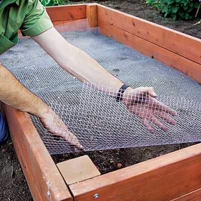 Желательно сделать для опалубки дно из металлической сетки (она продается в строительных магазинах). Эта сетка убережет ваши посадки от покушений со стороны кротов и слепышей.