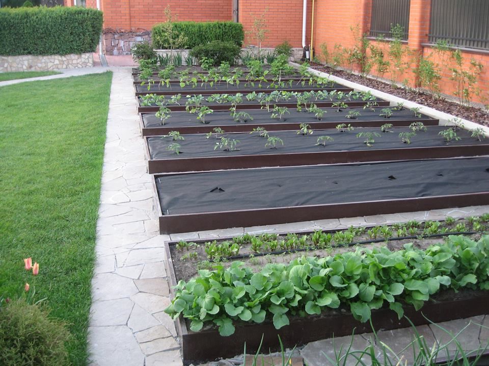 Из чего лучше делать высокие грядки — зависит от случая и пожеланий, возможностей хозяина участка, дачника. В большинстве случаев целесообразно использовать древесину или шифер, пластик. То, что дешевле. Размеры и расстояние между грядками не имеет большого значения. Все определяется желанием дачника.