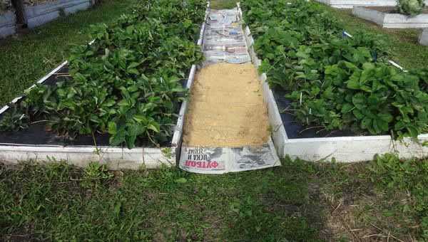 Если вы хотите выращивать в поддонах клубнику, то следует сделать грядки по другому методу. Поддон распиливается на заготовки, которые будут служить дном и стенками. Заполнять будущую конструкцию требуется высохшей травой, потом уложить слой мульчи и почву.
