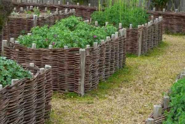 Очень красиво и оригинально смотрятся грядки из лозы. Чтобы их соорудить следует подготовить: