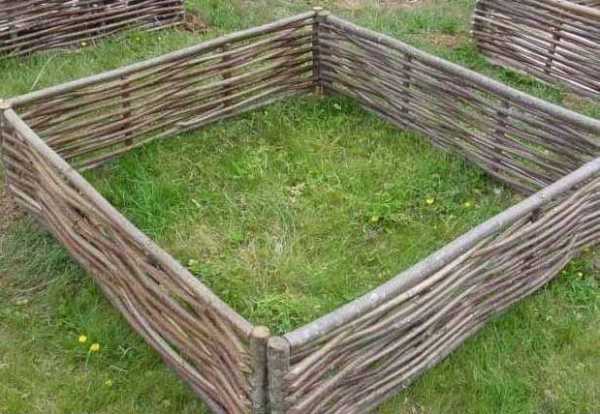 Ну и самый, наверное, бюджетный вариант высоких грядок — огораживание плетнем. Такие грядки получаются очень красивые и отлично впишутся в ландшафтный дизайн сада в природном стиле.