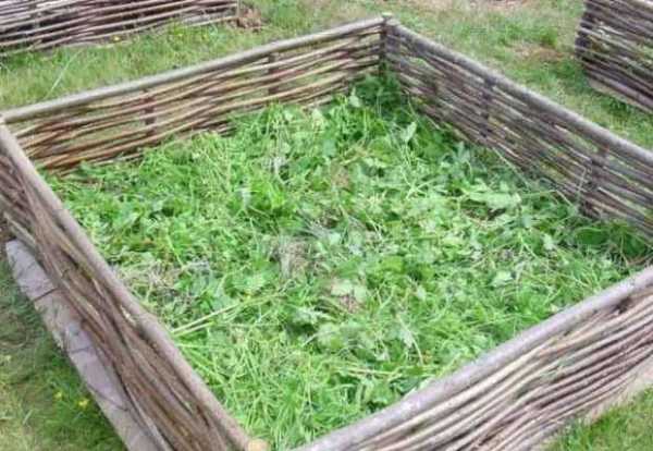 - Следующим слоем насыпаем свежескошенную траву с газона или выполотые сорняки.
