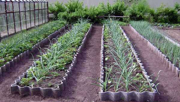 Волновой шифер смотрится аккуратно и красиво- Пластик. Самый дешевый и легкий вариант для обустройства огорода. Из бордюрной ленты делают самые причудливые формы грядок, а конструктор нередко применяют для формирования клумб.
